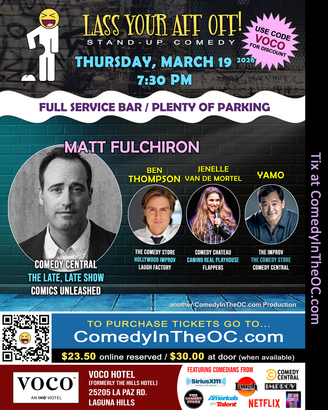 We look forward to seeing you on Thursday, March 19th at the Voco Hotel in Laguna Hills as we keep the comedy train rolling full steam ahead!